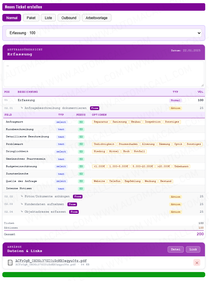 - Automatische Ticketerstellung aus Anrufen